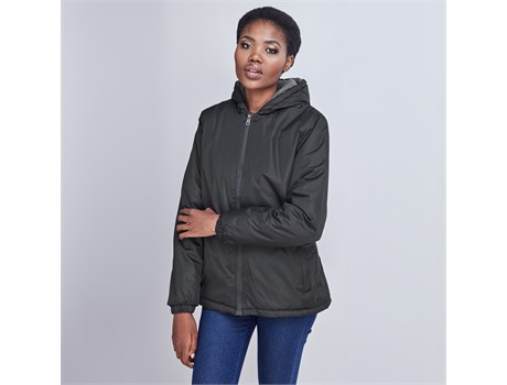 100% polyester with PVC coating, polar fleece lining, polyester wadding fully padded jacket with hood elasticated cuffs inner chest pocket welt pockets standard fit Polyester: Extremely durable & crease-resistant. It’s colourfast, quick-drying & stain resistant. �Easy to clean & maintain. Water Resistant: Fabric has been treated to repel & resist the penetration of water, however, is not 100% waterproof.